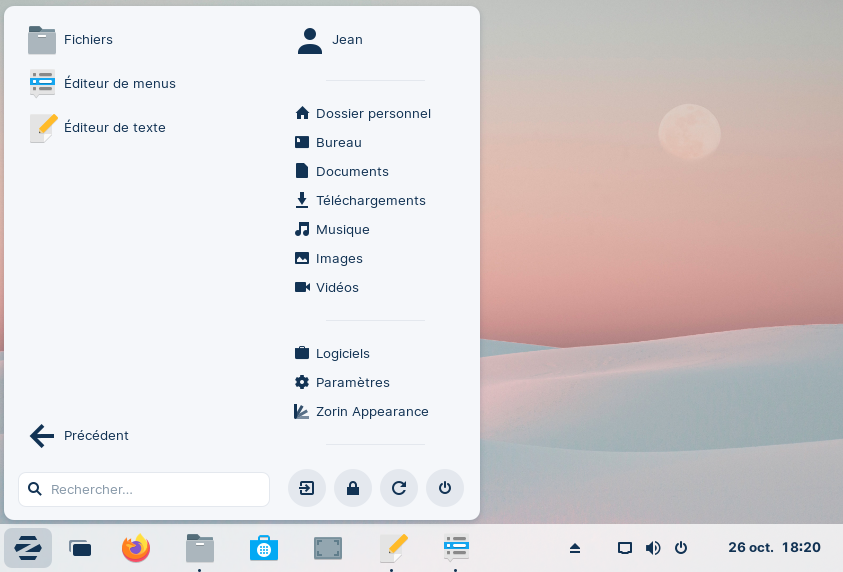 Voici donc le menu principal de Zorin 16 Core et les rubriques qui restent après application du script — oui, bon, d'accord... j'ai ajouté Brave et remplacé l'éditeur de menus "Menu principal" ("alacarte) par "menulibre", beaucoup plus intéressant... 🙄
