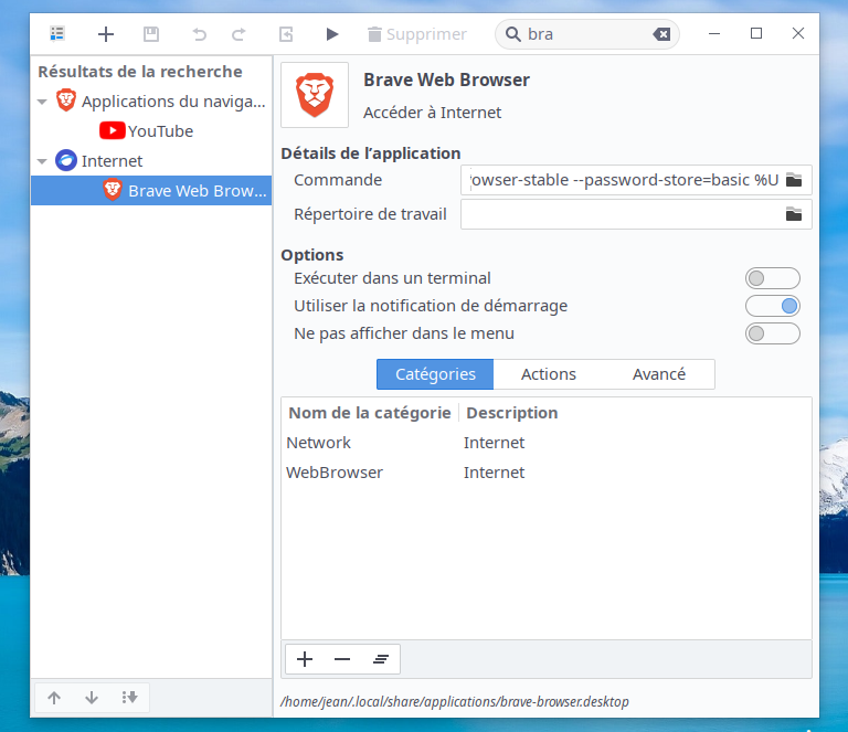 Cela vaut pour Google Chrome. Pour Chromium ou Brave, il faudra modifier le nom du lanceur pour essayer cette méthode. Comme ceci, par exemple :