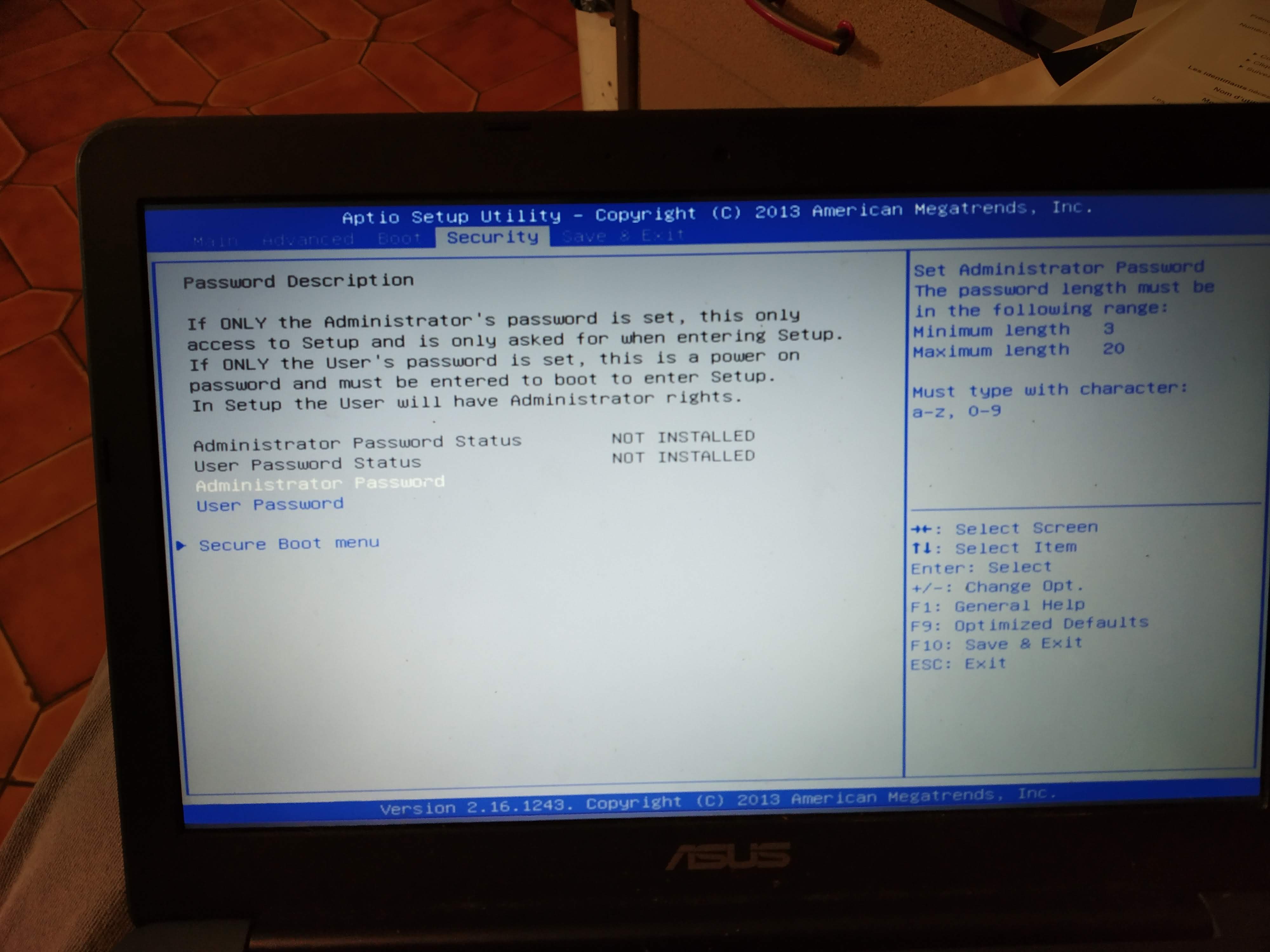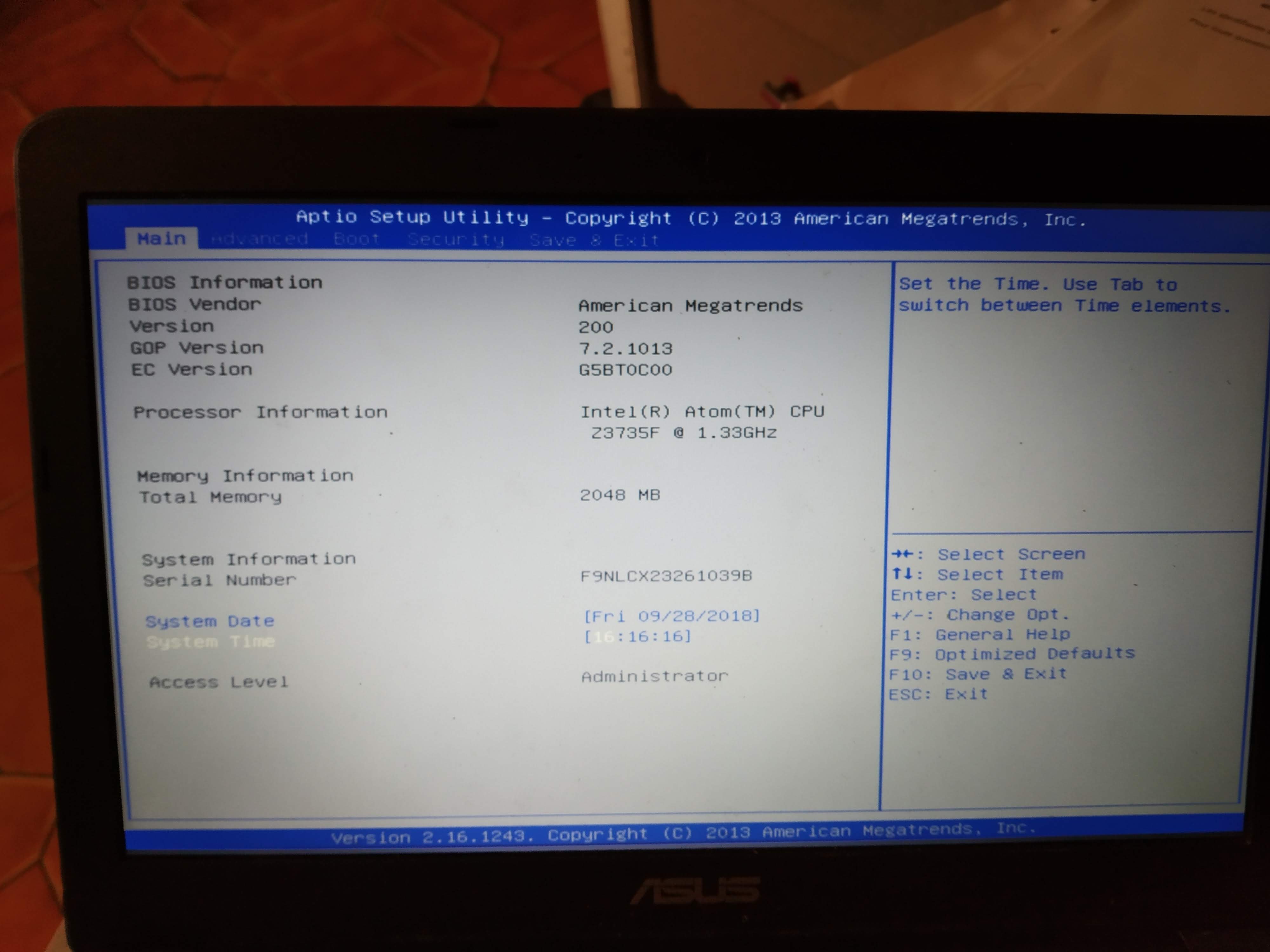 Site officiel pour accéder au bios d'un Assus eeebook : https://www.asus.com/fr/support/FAQ/1008829/