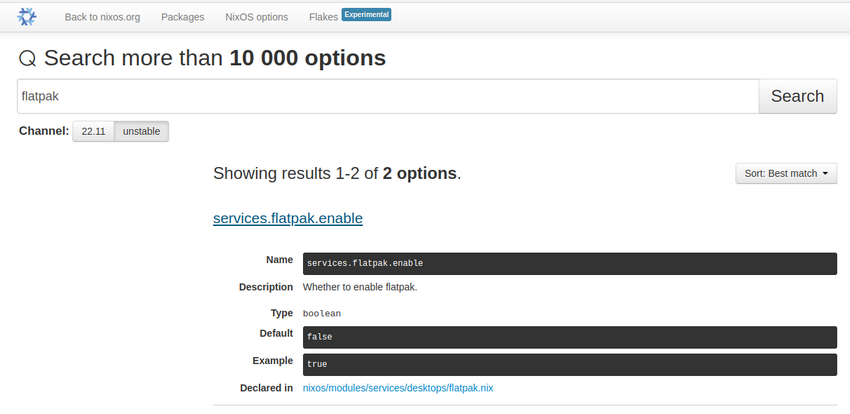 Le problème vient du fait que le manuel, censé correspondre à la version 22.11 de NixOS, n'a pas été actualisé.