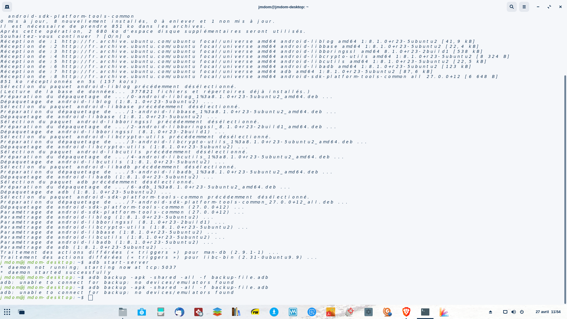 ... puis j'ai accepté le débogage USB et, après connexion du téléphone au moment précisé par la page, la sauvegarde s'est faite sans problèmes avec cette commande (ça, c'est le terminal qui me l'a expliqué) :