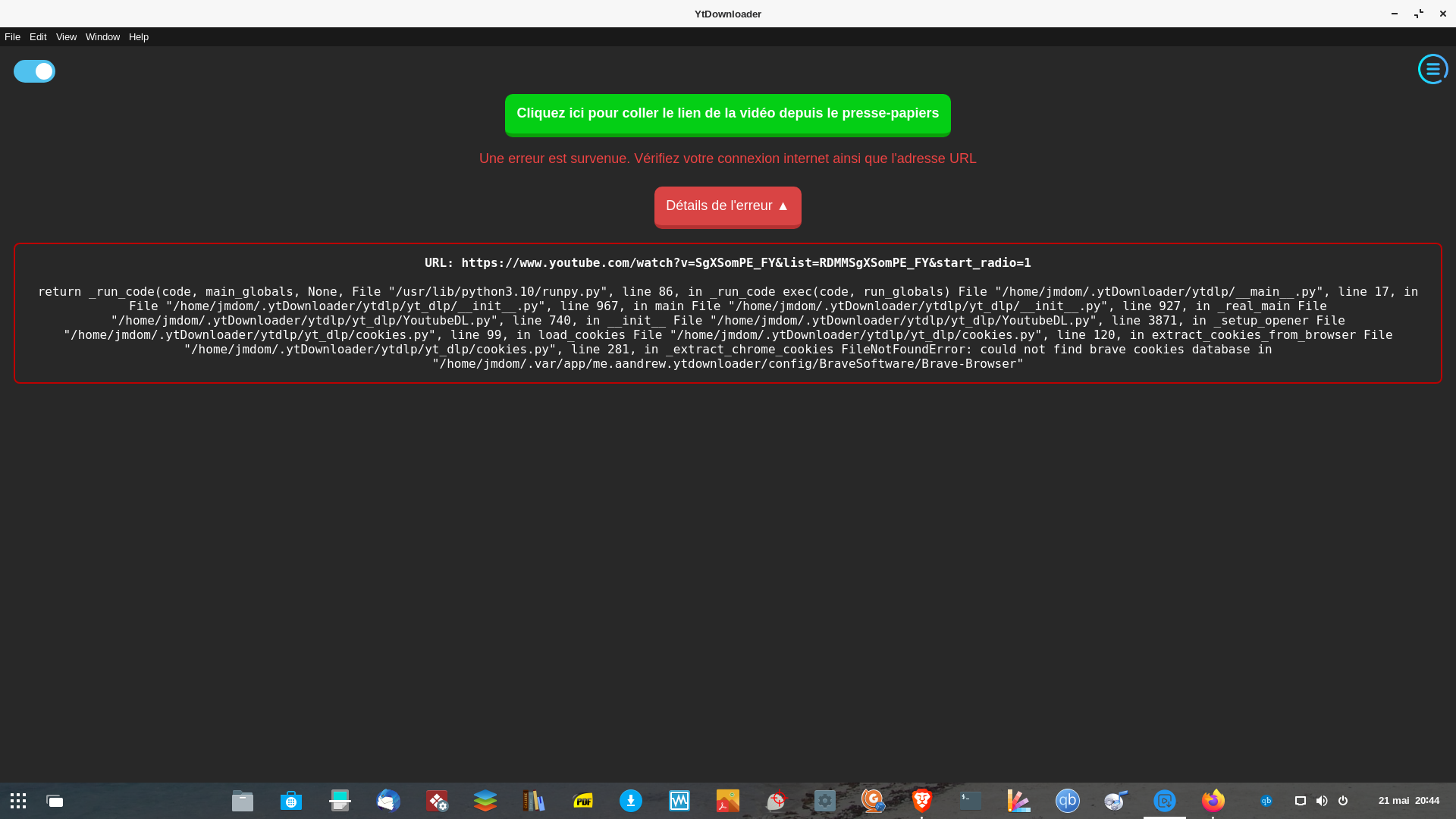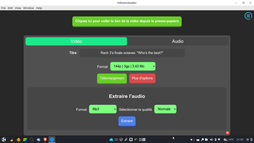 Jean-Marie a écrit : dim. 21 mai 2023 20:51 [...] YTDownloader ne me propose plus la case pour copier le lien de la vidéo [...]