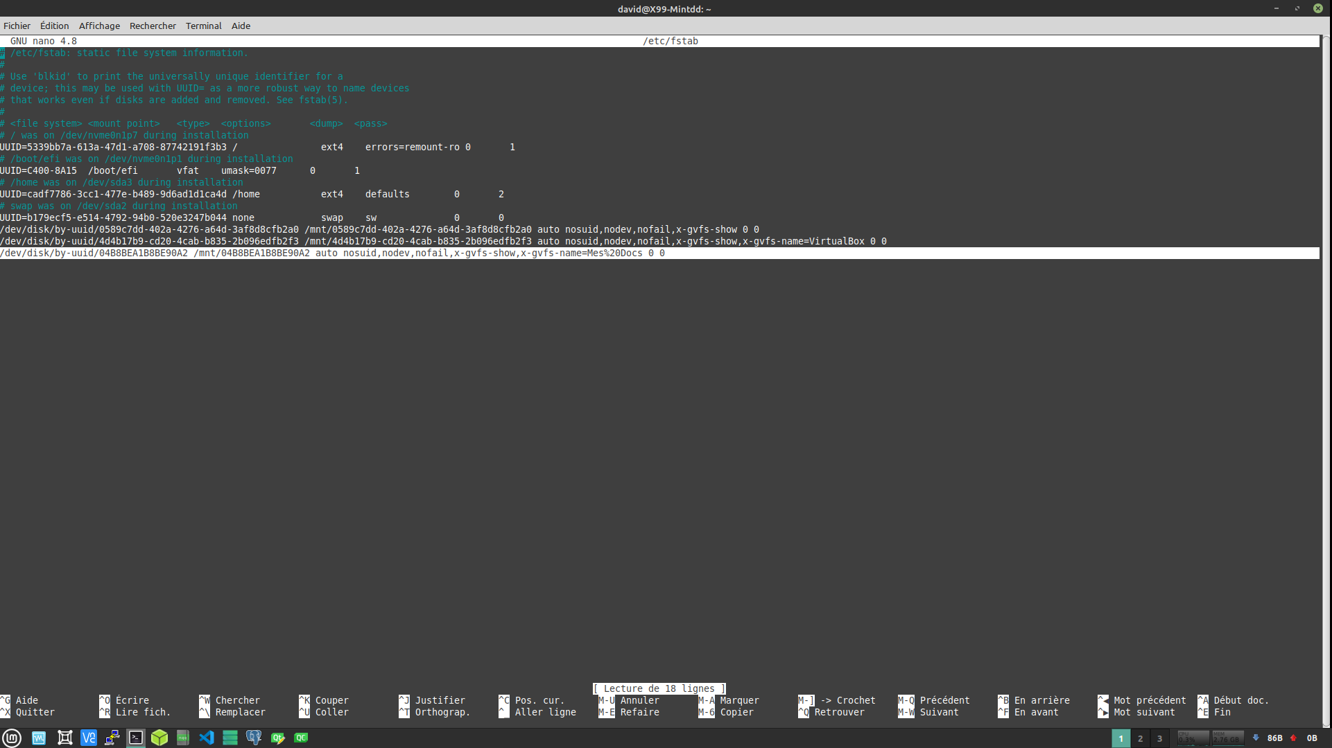 - Colle-l'UUID de ta partition à la place de "UUID".