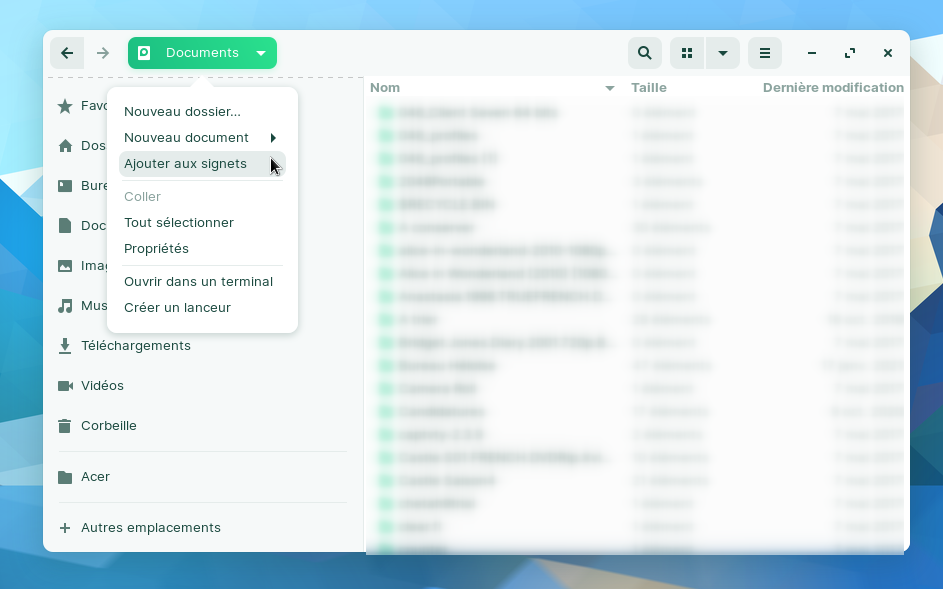 (1) Nemo permet aussi d'afficher deux répertoires côte à côte, ce qui est très pratique pour copier des fichiers.