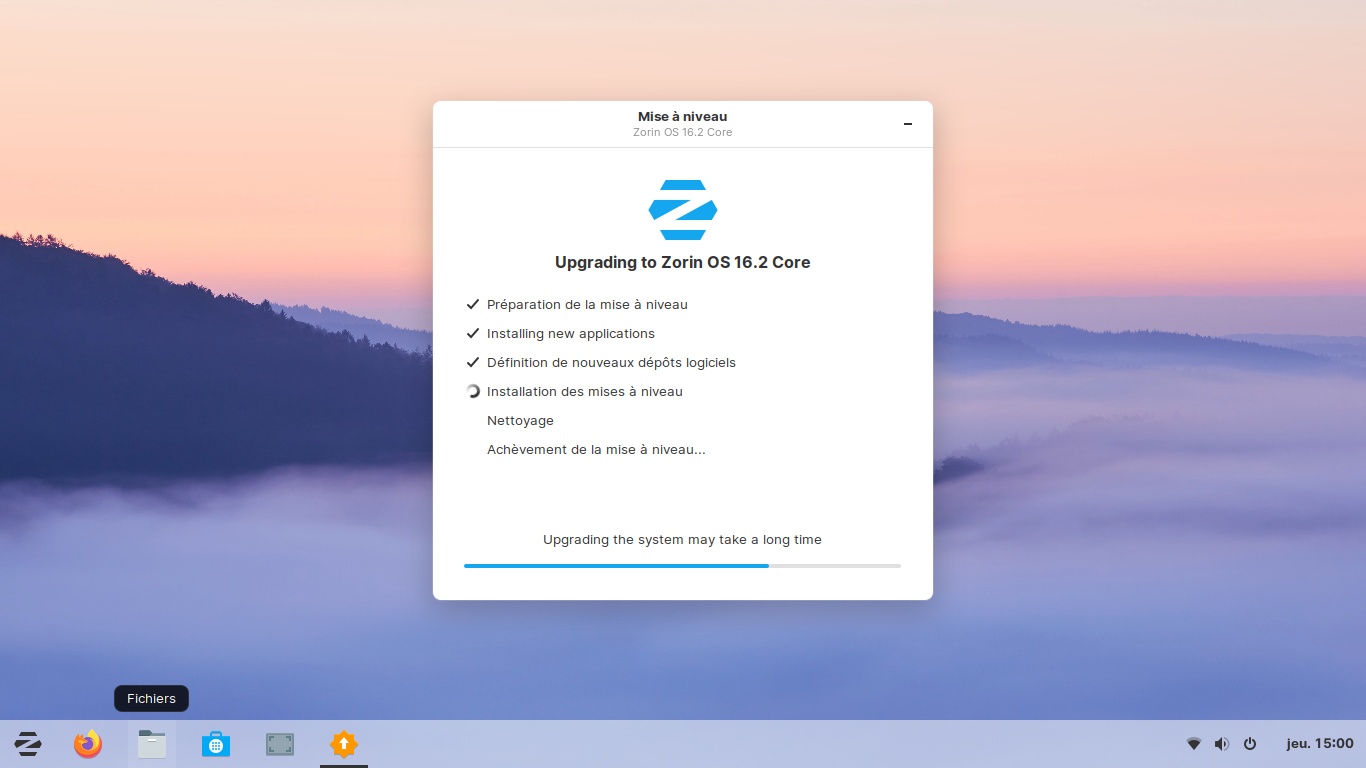 Il semblerait toutefois que les Zorin brothers aient pris la question au sérieux puisqu'une application dédiée, Upgrade Zorin OS, est désormais disponible dans les dépôts (à partir de Zorin 15).
