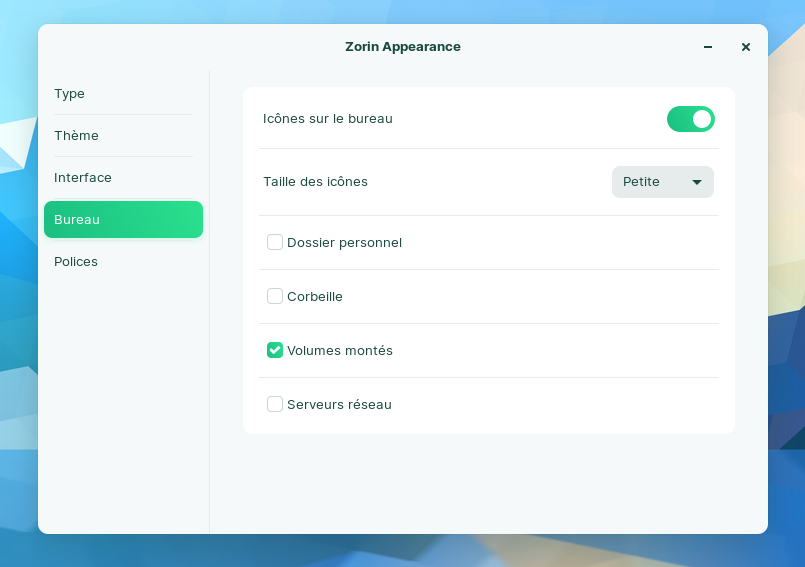 Normal, si tu n'as pas décoché l'affichage des partitions montées dans les paramètres du bureau (Zorin Appearance > Bureau > Volumes montés) :