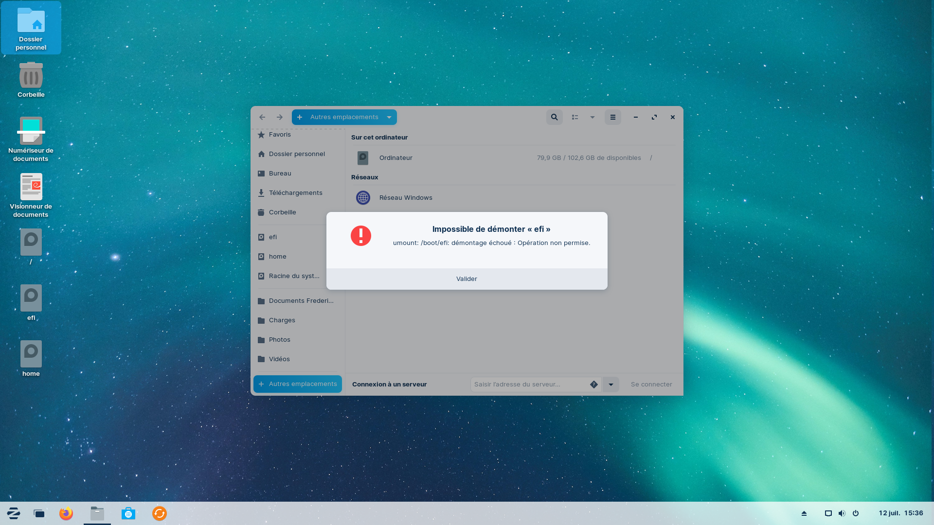 Apparition sur le bureau de la "/", "Efi" et "home" sujet résolu Le sujet est résolu