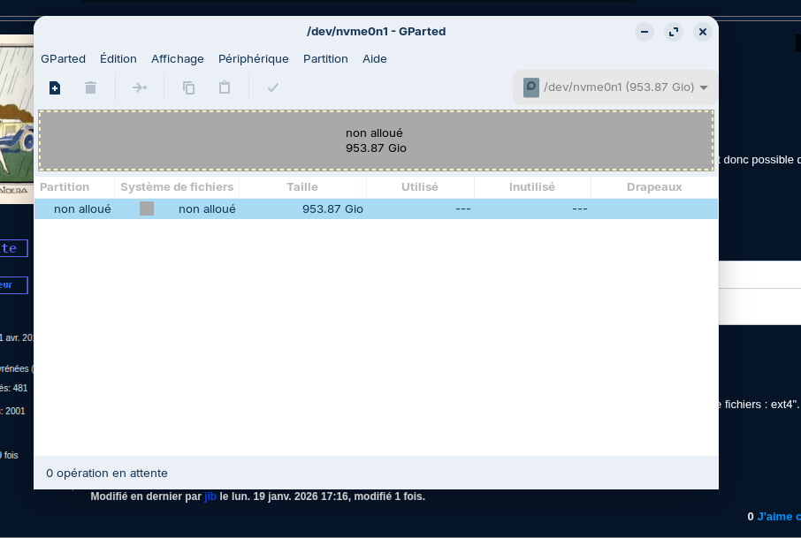 Pas besoin d'être un spécialiste en informatique (?), tape "gpa" dans la boîte de recherche d'applications du menu principal et lance GParted.