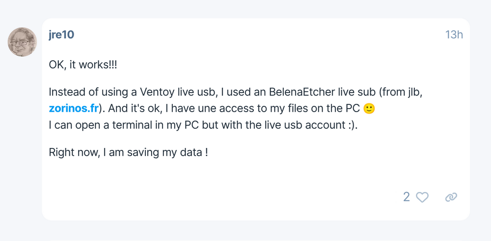 Ton sujet sur le forum officiel m'a permis de reconstituer la chaîne de tes malheurs et de comprendre le rapport entre le démarrage du daemon Snap et l'accès au menu de GRUB.
