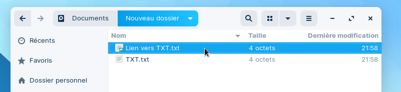 Pour créer le lien, on fait un glisser-déposer du fichier dans le même répertoire avec "CTRL Maj" : si on le fait directement du répertoire vers le bureau comme je l'ai inconsidérément affirmé dans un premier temps, même avec "CTRL Maj", on ne fait que copier le fichier.