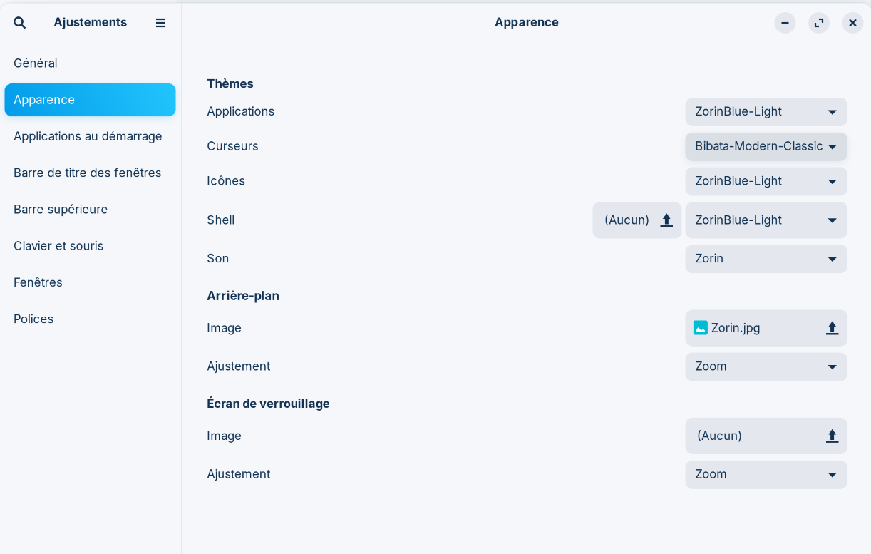 (on peut choisir les curseurs depuis "Zorin Appearance")