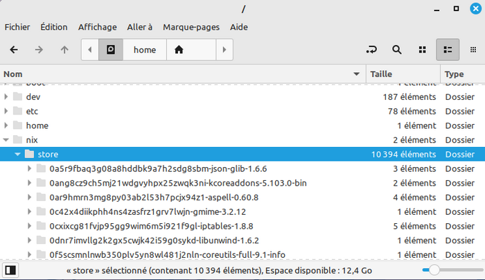 Notez qu'il n'y a pas besoin d'une élévation des droits (sudo) pour installer un paquet en choisissant cette méthode : NixOS, qui est conçu, entre autres, pour être multi-utilisateur, va jusqu'au bout de la logique puisque ce mode d'installation n'affectera que l'environnement de l'utilisateur... qui devra en contrepartie se charger de la mise à jour de "ses" logiciels. Pour faciliter la tâche, il existe aussi un "home manager", mais je ne l'ai pas encore essayé...