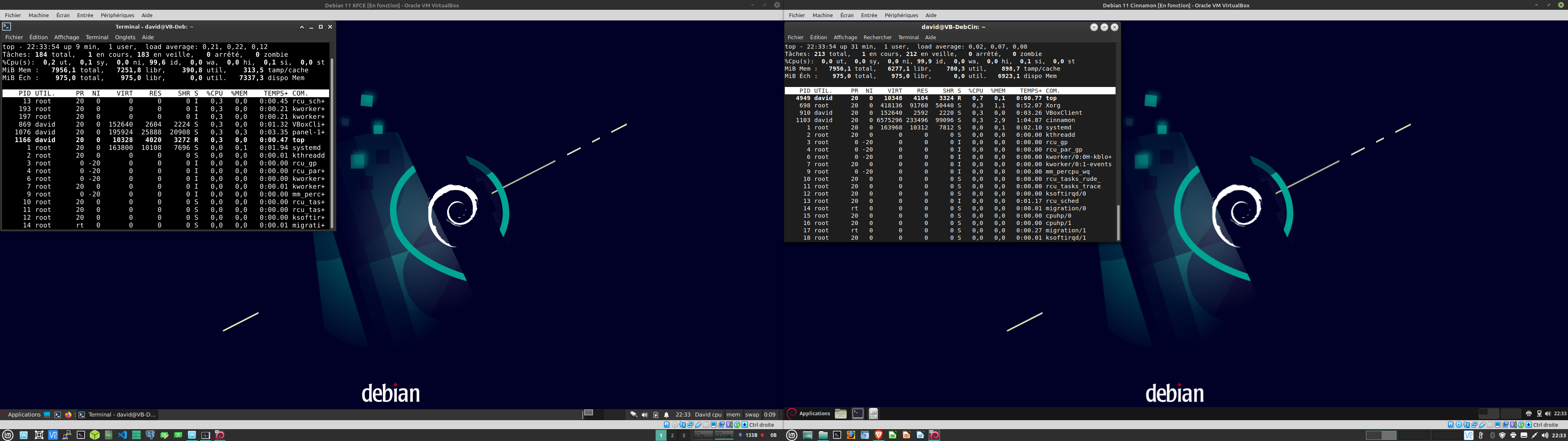 A gauche XFCE à droite Cinnamon