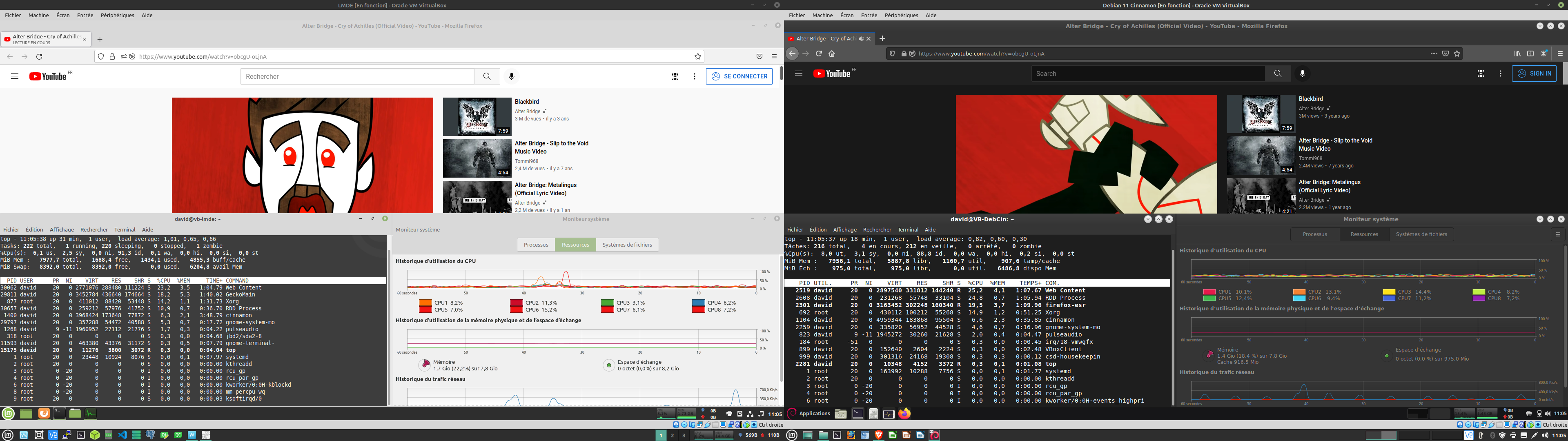 @jlb, voici les résultats : à gauche LMDE 4, et à droite Debian 11 Cinnamon