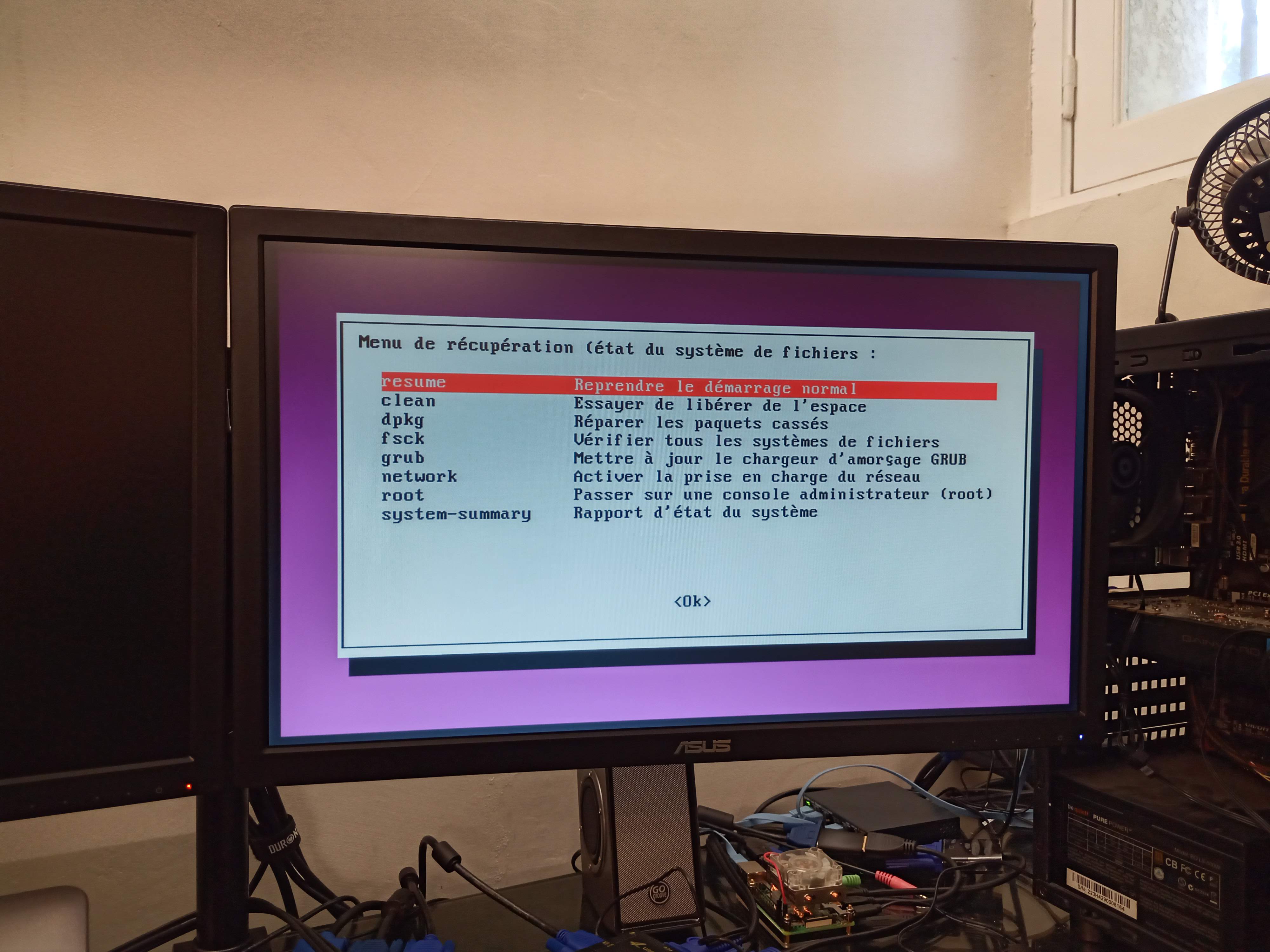 Ne m'avouant pas vaincu je rentre dans les options de lancement de Zorin, et je choisi l'option dont j'ai oublié le nom mais qui correspond à une réparation.