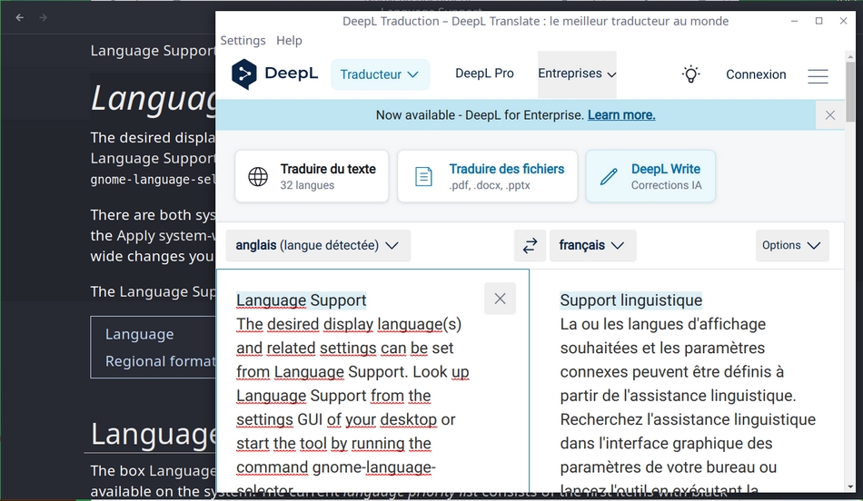 • Enfin, en combinaison avec le petit traducteur DeepL Linux Electron au format AppImage que je ne saurais trop vous recommander, vous pourrez traduire les pages en anglais en deux clics, ou presque (sélection du passage, CTRL c, CTRL Alt d) :