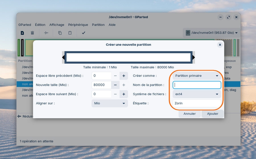 Évitez les espaces ("Zorin" plutôt que Zorin 17") si vous voulez un jour pouvoir accéder à la partition par ligne de commande :