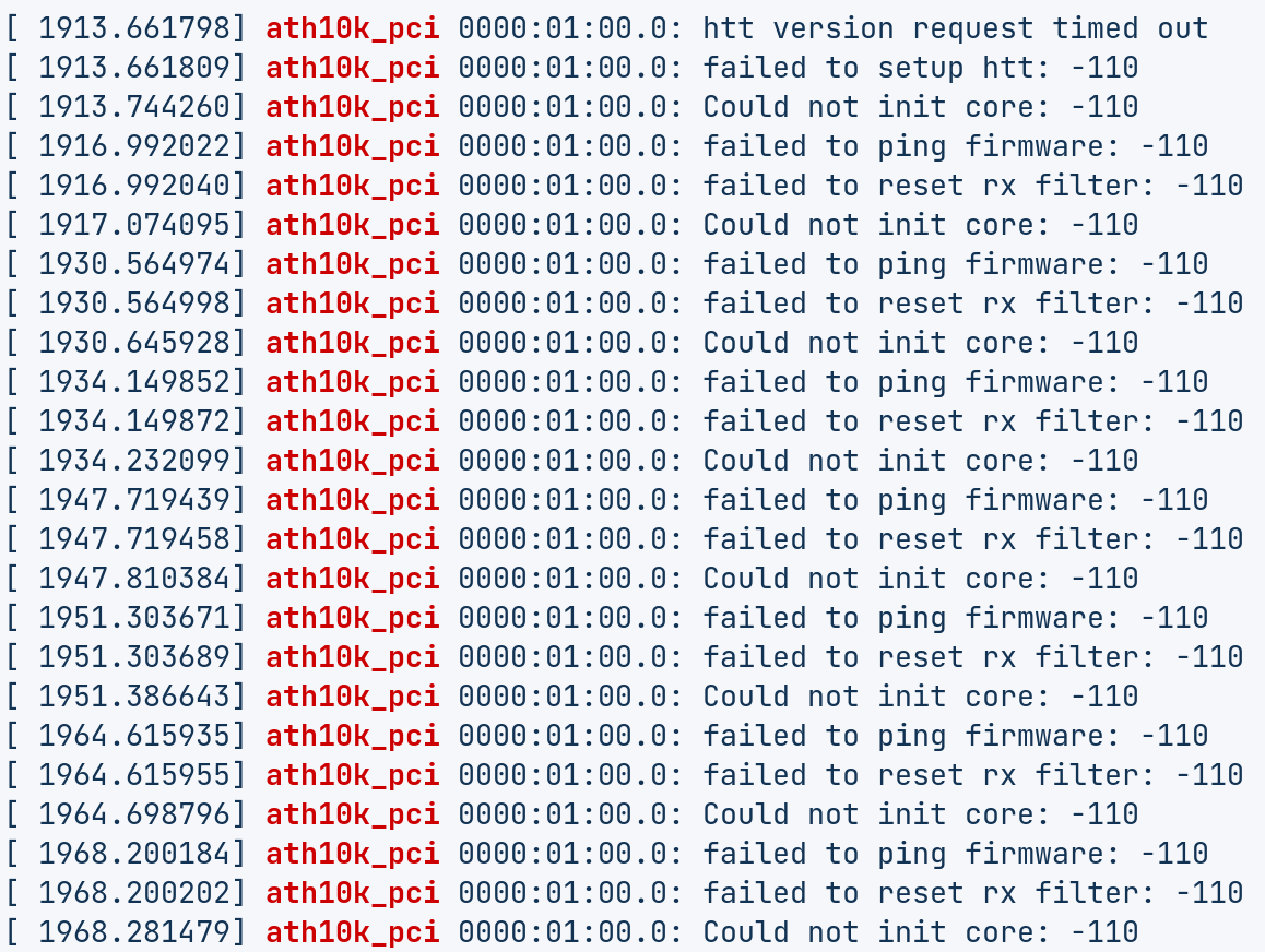RomUn a écrit : mar. 12 oct. 2021 14:43Si je comprends bien la solution proposée, le problème viendrait de ath10k_pci, le driver