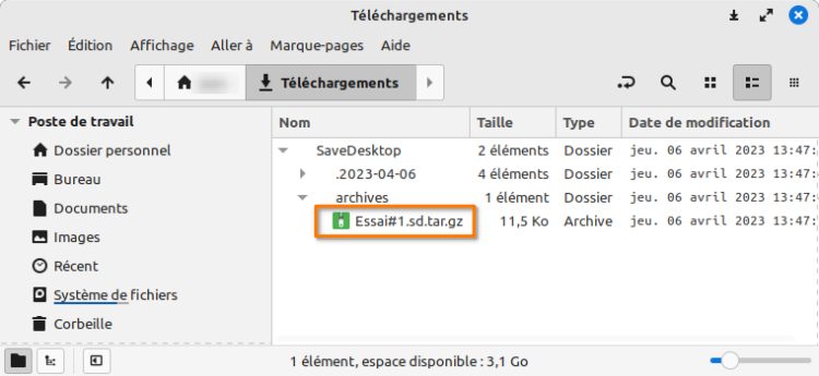 Vous trouverez l'archive dans le répertoire "Téléchargements > SaveDesktop > archives" :