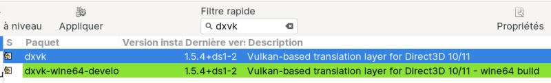 - Installer ensuite, la version 1.5 de dxvk. Le plus simple est d’utiliser Synaptic :