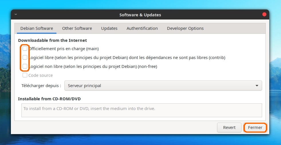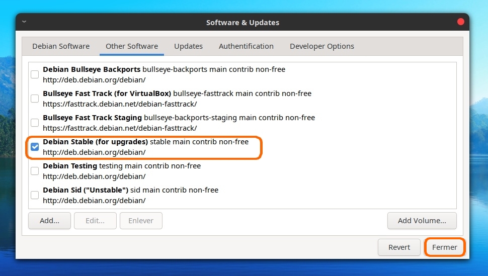 Autre atout par rapport à une Debian "normale", la liste des sources est pré-configurée pour tirer parti des différents dépôts :