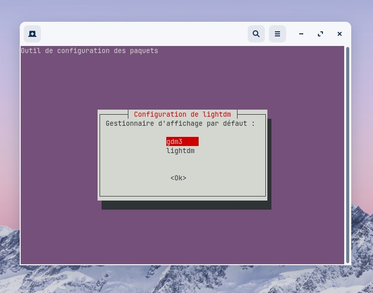 ...et validez le choix de gdm3 (le gestionnaire d'affichage de Zorin 16 Core) comme gestionnaire par défaut :