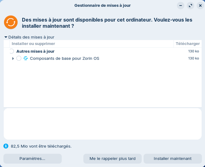MaJ composant de base Zorin