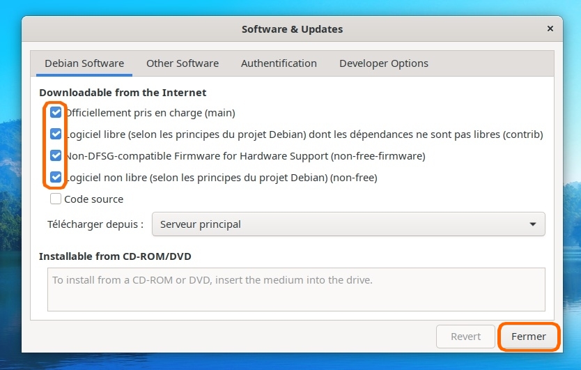 Autre atout par rapport à une Debian "normale", la liste des sources est pré-configurée pour tirer parti des différents dépôts :