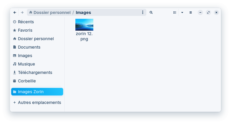 Sauf que le gestionnaire de fichiers "Nautilus" (alias "Fichiers") s’ouvre sur le "Dossier personnel" de Zorin…