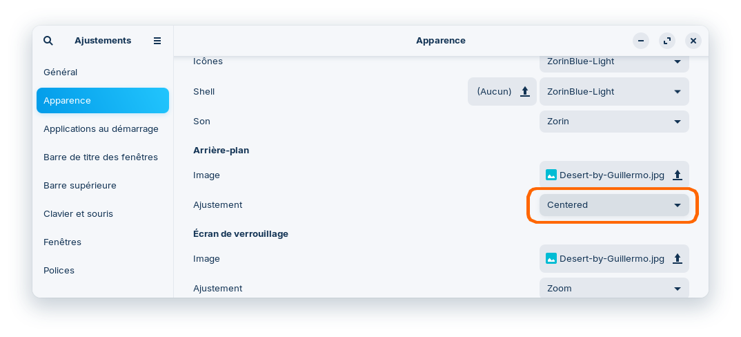 Lance-le et va dans "Apparence > Arrière-plan" puis choisis "Centered" — ou une autre des dispositions qui te sont proposées :