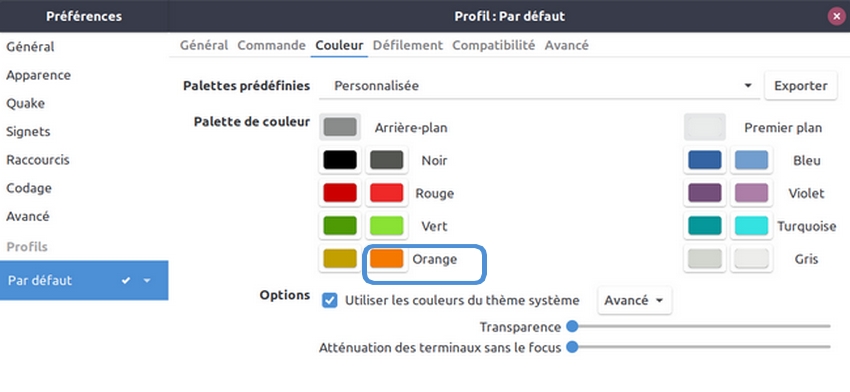 Pour compenser ce que ma première réponse avait d'un peu abrupt   :blush:, je te propose ce à quoi je suis parvenu, sur la base du terminal Tilix que j'utilise et que je te conseillerais volontiers.