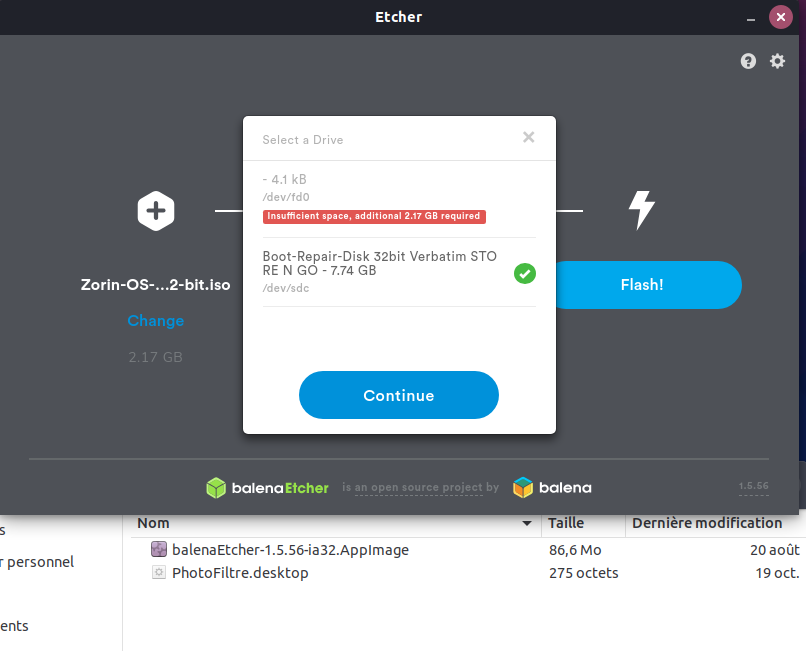 ​​​​​​​Edit: Pour une version 32 bits de Zorin, il faudra télécharger la version" balena-etcher-electron_1.5.70_i386.deb"
