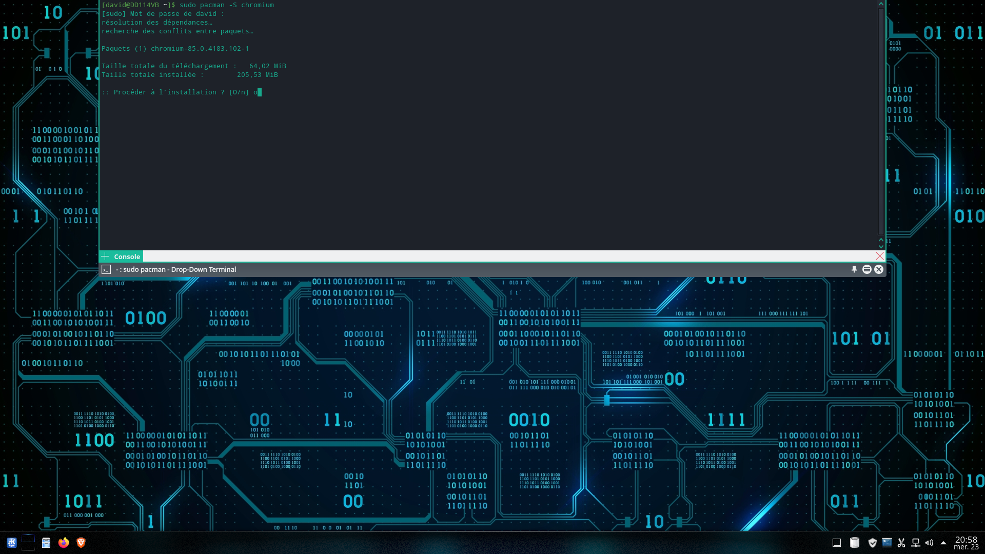 On peut relativement simplement configurer tout ce qu'on veut dedans, le chargeur de logiciels est Pacman fournit avec une très belle disponibilité de programmes (pas aussi fournie je pense que LMDE @jlb, mais quand même), dont Brave un navigateur internet que j'affectionne tout particulièrement, mais ce n'est pas le sujet.