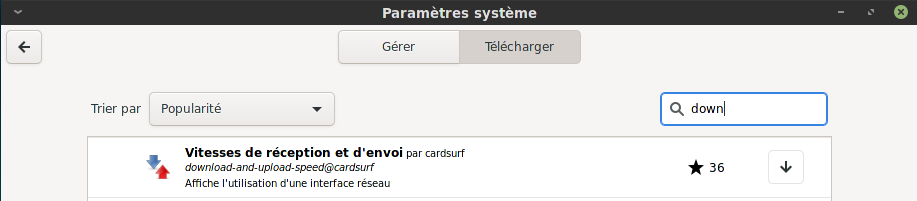 J'ai choisi "Internet Speed Meter" pour son minimalisme mais on en trouve d'autres au catalogue.
